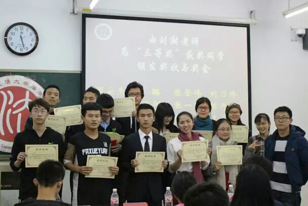 优秀教练员奖、全勤奖、三等奖、二等奖和一等奖的同学颁发奖状并合影留念。